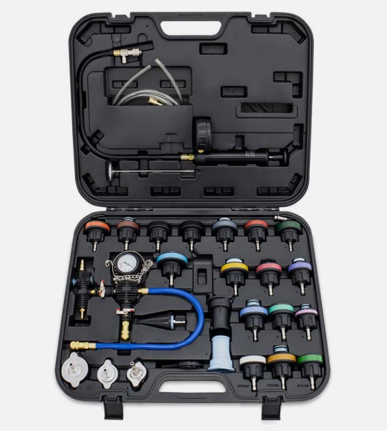 This is the Mishimoto 28-piece Coolant Pressure and Vacuum Purge kit. You can find it here (not sponsored, just a killer kit)